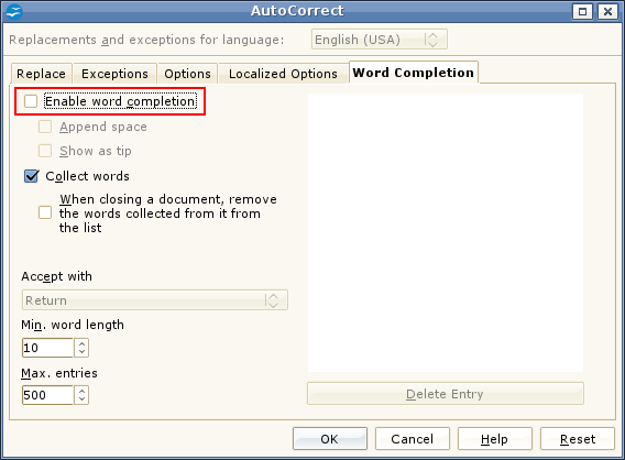 Posted: 2015-07-22 Filed under: office | Tags: autocorrect, disable, libreoffice, openoffice, turn off, word completion Leave a commentI am currently using OpenOffice.org 4.1.1, installed from SBo and want to remove the word autocompletion behaviour. I googled a bit and found a solution here.