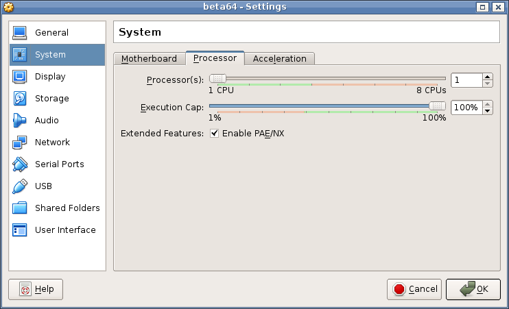 Posted: 2016-03-17 Filed under: system | Tags: cpu, slackbuilds, ugene, virtualbox, vm Leave a commentThis is ridiculous. Some time ago I ‘fixed’ the setting of my VirtualBox. However, I experienced segfaults again. I am using VirtualBox version 5.0.14 r105127 on Slackware64 14.1 -multilib. The host machine is running Slackware64 -current and the program in question is Ugene version 1.21.0. I managed to make it build fine after I set the following options for the VM: