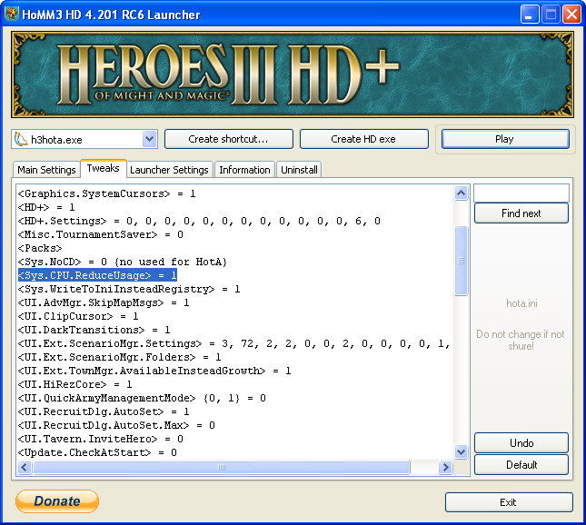 - Last, install Heroes III HD+, in order to play in a resolution higher than the default 800×600 pixels. This mod is 100% compatible with Horn of the Abyss.