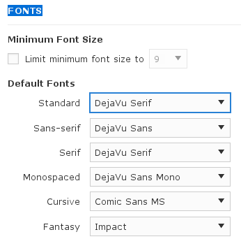 I have been switching between browsers lately and realised I am really tied to a certain set of fonts. So, for my own future reference here they are.