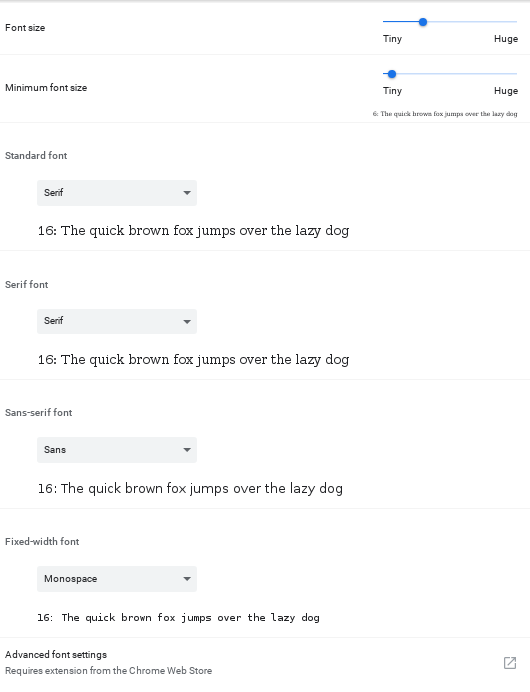 Posted: 2019-06-30 Filed under: misc, network | Tags: fonts Leave a commentI have been switching between browsers lately and realised I am really tied to a certain set of fonts. So, for my own future reference here they are.